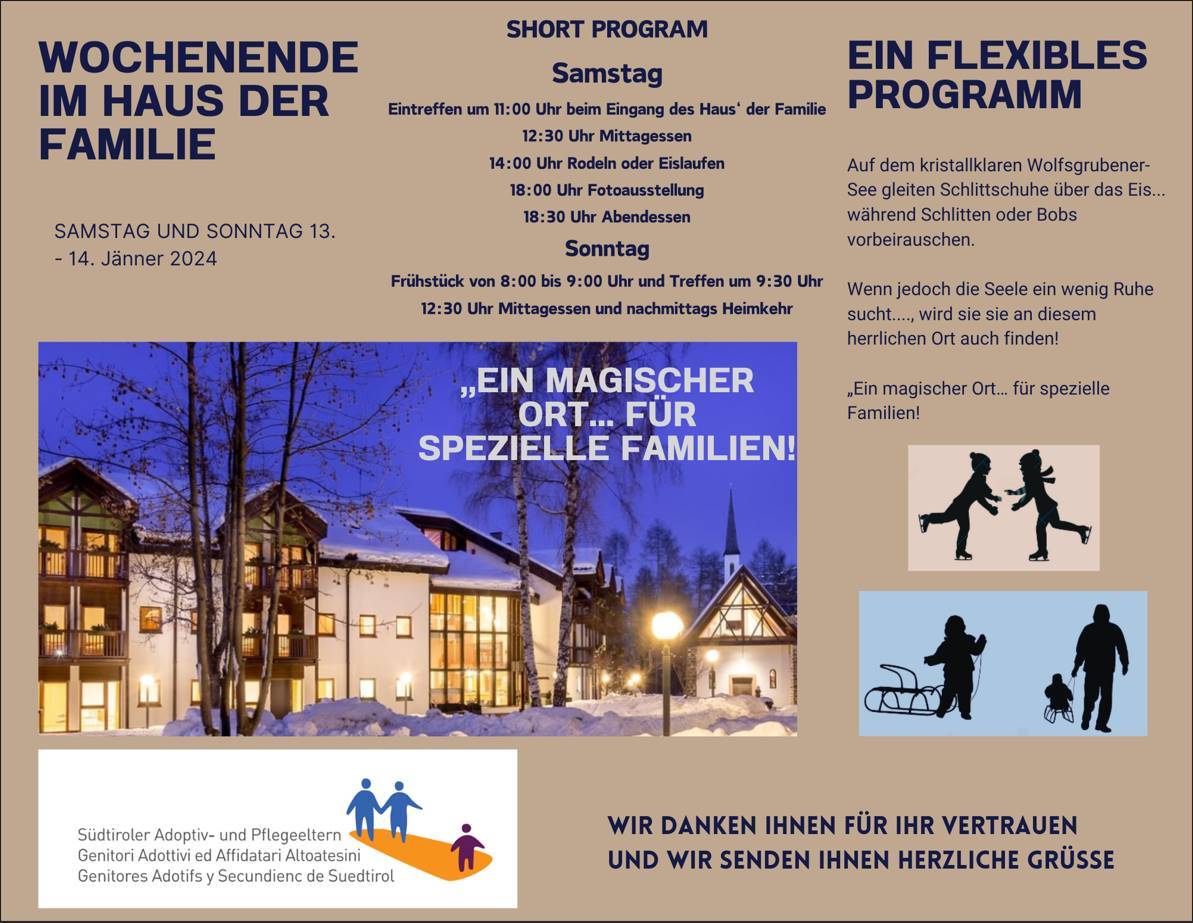 13.-14. Januar 2024: Weekend für die Familien mit themenbezogenen Treffen, Lichtenstern am Ritten
